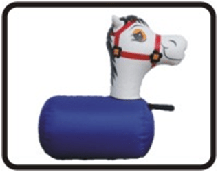 Pony hops are a blast! Rent them in pairs Great for all ages. Have a blast watching kids race on these “wacky” Pony Hops for ages 6-11. A guaranteed hit as part of the "Inflatable Olympics" & can be used with other inflatable packages for all participants and onlookers. Race your family, friends, and co-workers! For use on grass or indoors.