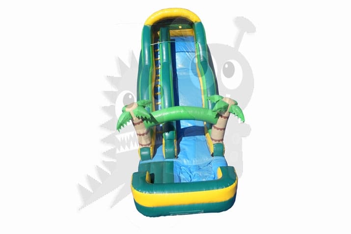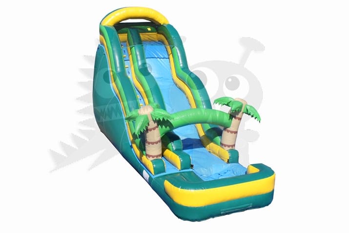 This brightly colored Tropical/Beach themed inflatable wet/dry slide is perfect for any Party Event to make a lasting impression. Rent this for your next large family gathering, block party or company picnic. If you are still looking for a unique and entertaining party idea, this is it! Our huge inflatable slide is sure to be a crowd pleaser that your kids will want back year after year.