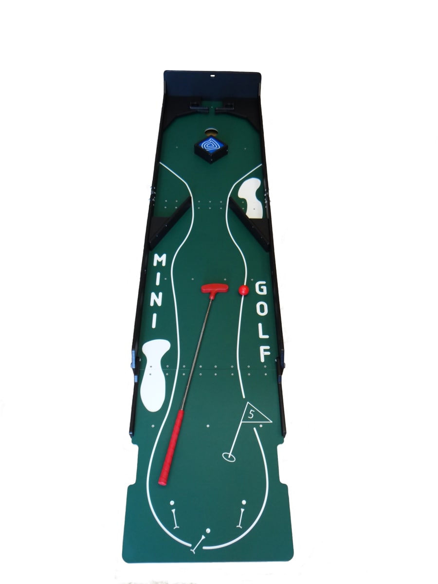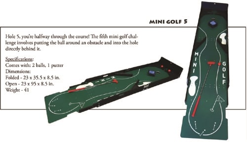 Halfway through the 9 hole course, this one has you narrowly put around multiple obstacles.