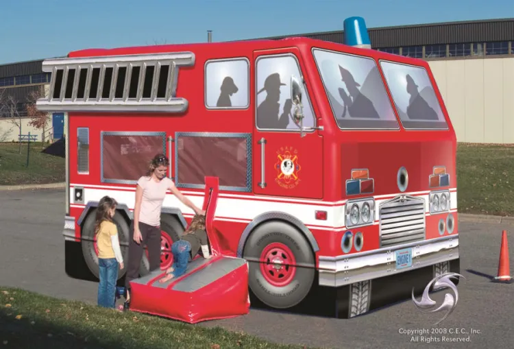 - We secure the fire truck using stakes or sandbags depending on your surface and setup area.