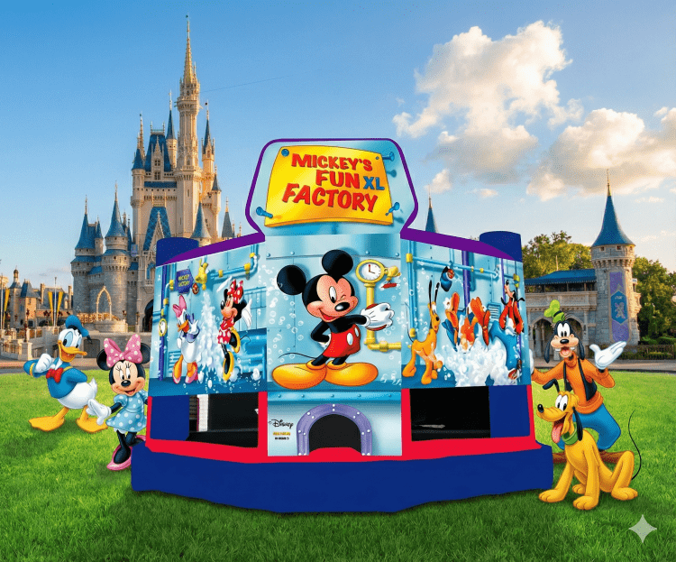 Bring the timeless magic of Mickey’s world to your event with our Mickey’s Fun Factory XL Bounce House, an extra-large, diamond-shaped inflatable perfect for events across Staten Island, Brooklyn, Queens, Manhattan, the Bronx, and NJ. Bold wraparound graphics featuring classic Mickey characters make this a true showpiece, while the oversized interior gives kids tons of room to jump, play, and burn off energy. Mesh windows keep the space cool with great airflow and allow adults to easily supervise the fun, and the wide, low step makes entry safe and simple for little ones.