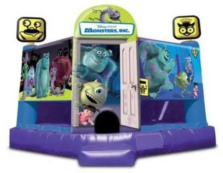 Step into laughter and playful spooks with our Monsters Inc Bounce House, a bright and colorful inflatable perfect for events across Staten Island, Brooklyn, Queens, Manhattan, the Bronx, and NJ. Movie-inspired artwork wraps the walls and entrance, creating an immersive monster-world backdrop that excites kids the moment they see it. The spacious interior gives plenty of room for groups to jump together, burn off energy, and enjoy safe, contained play that parents can easily supervise through the mesh window panels.