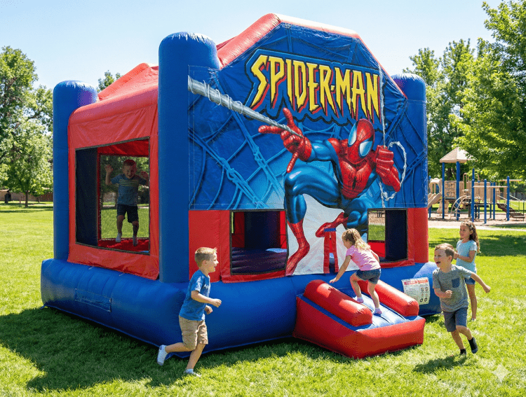 Give your little hero a day of web-slinging excitement with our Spider Man Castle Bounce House, a vibrant superhero-themed inflatable perfect for events across Staten Island, Brooklyn, Queens, Manhattan, the Bronx, and NJ. Bold Spider-Man graphics on the front panel make this unit instantly eye-catching, while the spacious interior gives kids plenty of room to jump, bounce, and imagine they’re swinging through the city. Mesh windows on all sides provide great airflow and allow adults to supervise easily, and the low step entry keeps climbing in and out safe for younger jumpers.