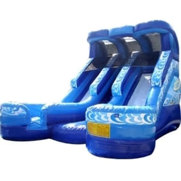 The impressive Double Lane Slide is also a dual Water Slide. Guaranteed to add tons of excitement and acceleration to any outdoor event. Kids can climb together up the center climb and then choose a left or right-sided sliding. This is a fast-track ride that has a cushioned bottom with a safety stop.(Because of extended drying times this unit cannot be used as water slide if it is booked as dry slide - no exceptions)