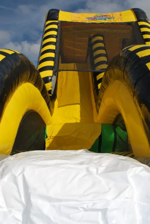 The end of the "Atomic Rush" a rock climb slide that ends with a 21' drop into an air bag! Are you brave enough?!