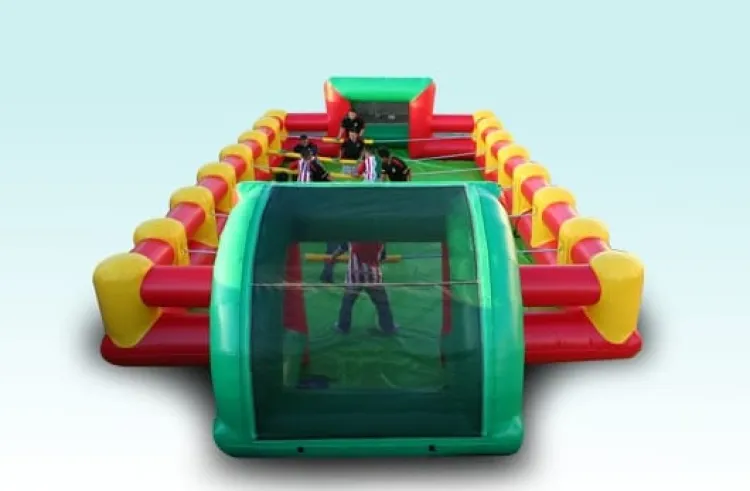 Come join the fun in this inflatable life size foosball game! Working independently but with your team to get the ball past the Goal Line! Can you pass the ball before the other team kicks it back!? 5 on each team a ten player game beat your friends to be Foosball Champion!