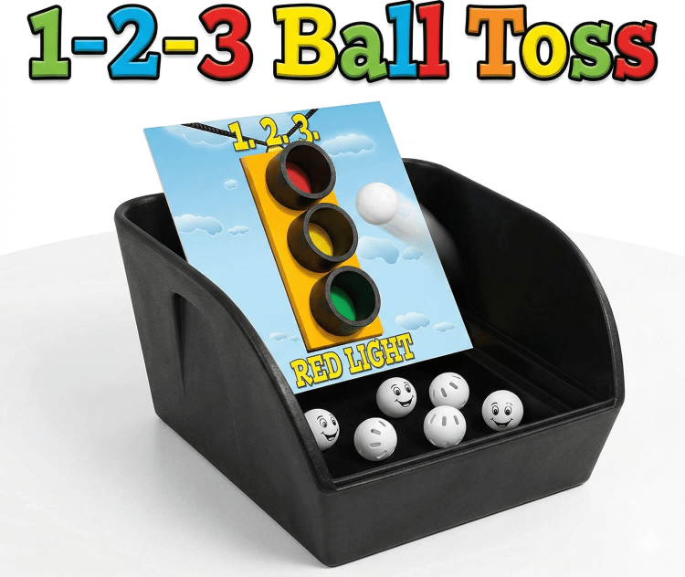 Try to toss the balls into the "green light" while avoiding the red and yellow lights. Win by getting a ball into the “green”.