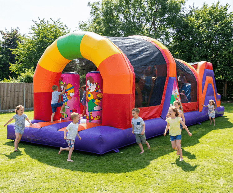 Bring big-top excitement to your event with the 24' Circus Obstacle Course, a bright, action-packed inflatable perfect for Staten Island, Brooklyn, Queens, Manhattan, the Bronx, and NJ. Designed with bold circus colors and playful graphics, this compact obstacle course delivers fast-moving fun as kids race through pop-up characters, crawl-through tunnels, climbing elements, and padded challenges—all in a safe, enclosed layout that keeps the action contained and easy to supervise.